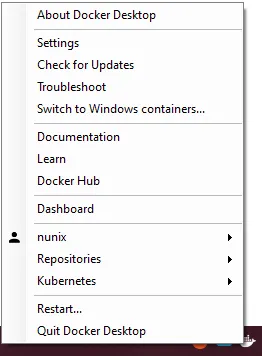 - Start Docker Desktop and switch to Windows Containers (if not the default)