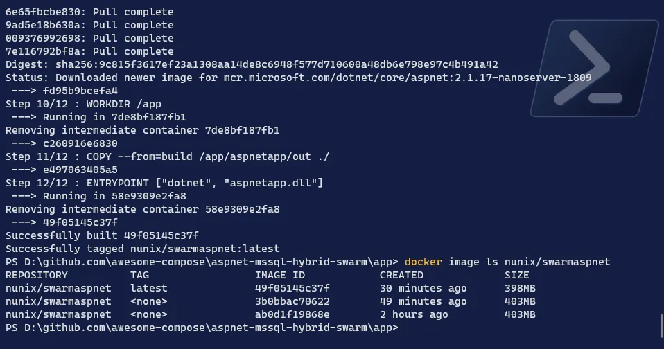 But before we can deploy it, as docker stack does not support building an image during deployment, we will need to build it before and then reference it in our modified compose file.