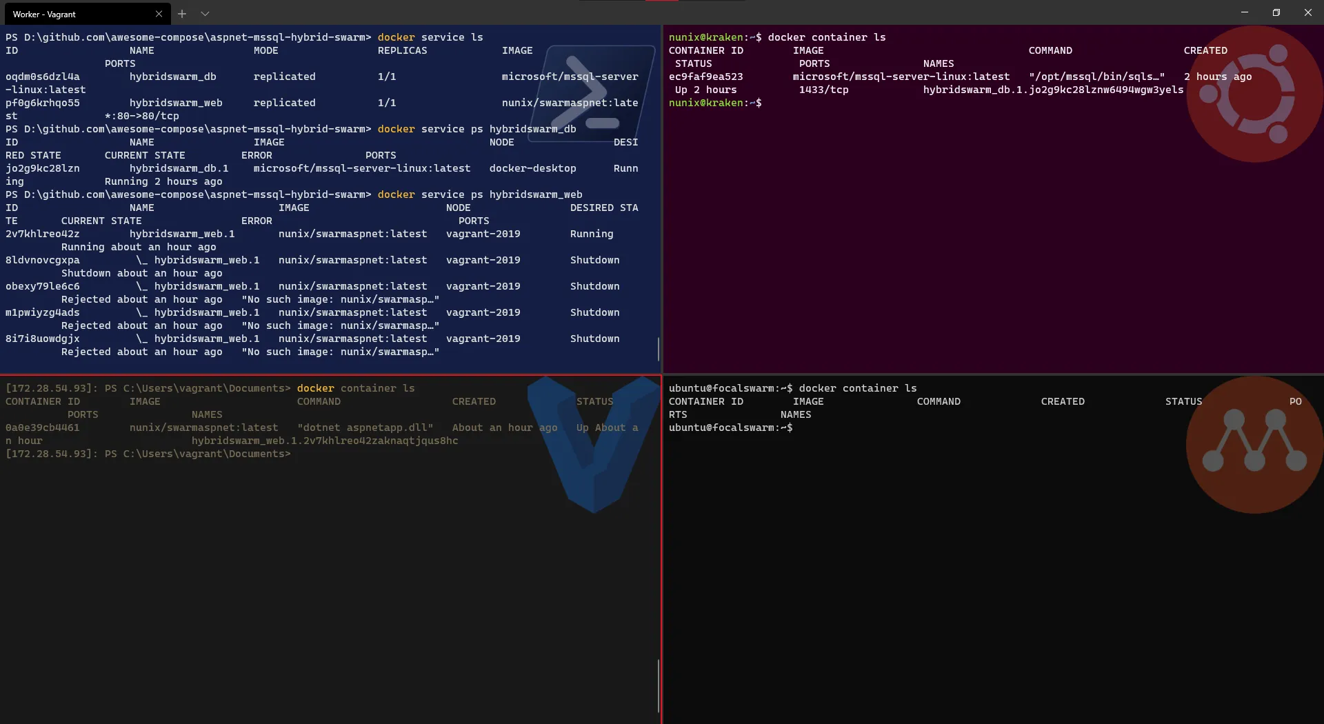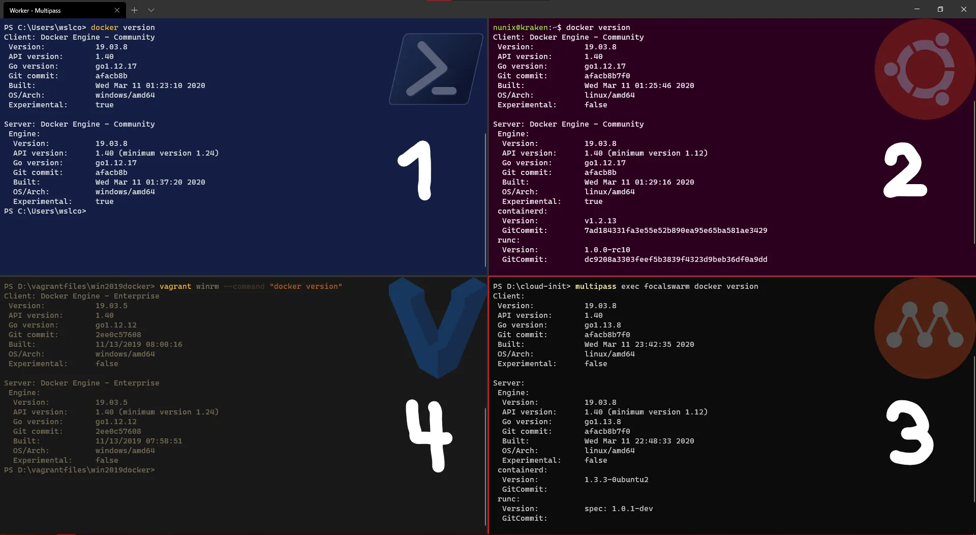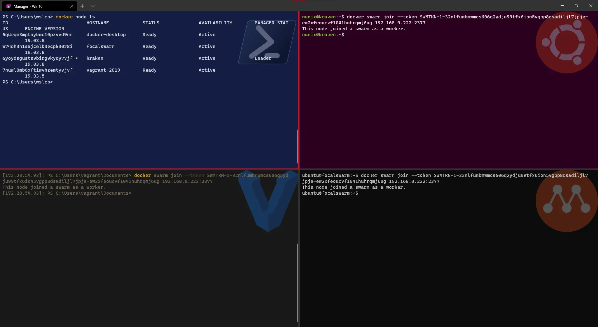 Out of the four nodes, we will have one as the manager (Windows) with three workers (1x Windows + 2x Linux).