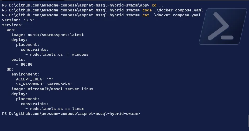 We will deploy a (remixed) web app from the list of Awesome Compose: Asp.net (on Windows) and MS SQL (on Linux).