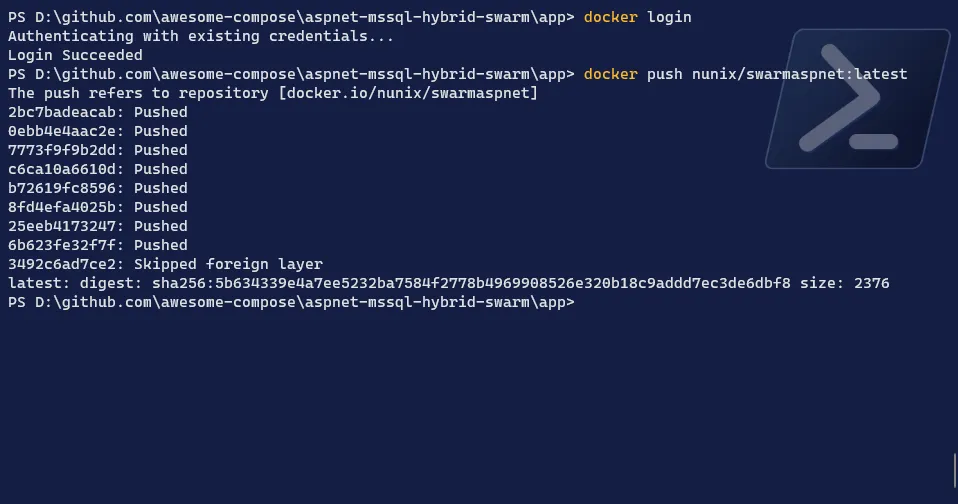 Finally, we will need to push the image as it’s living only in our Manager node but we need it on our Windows Worker