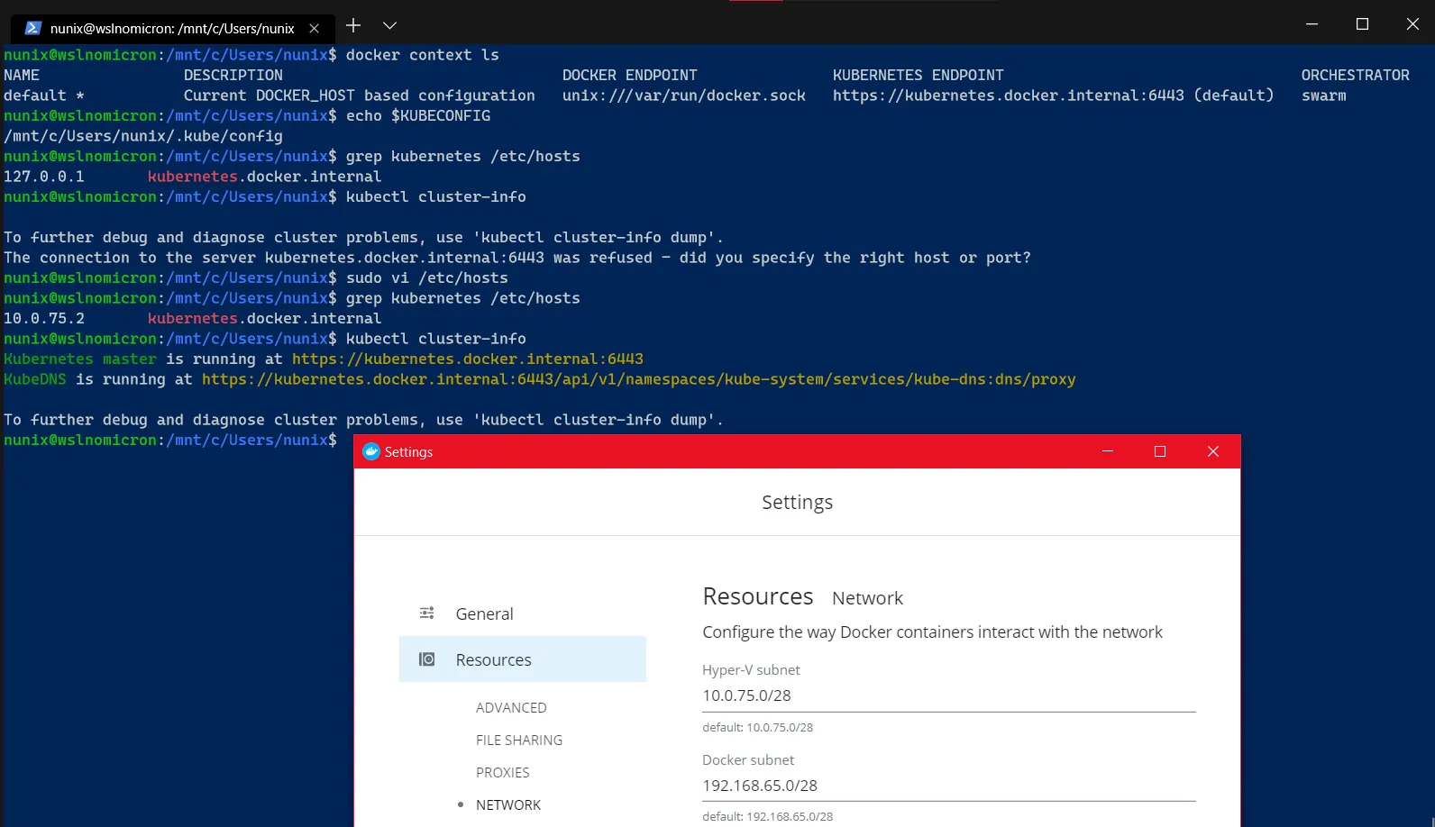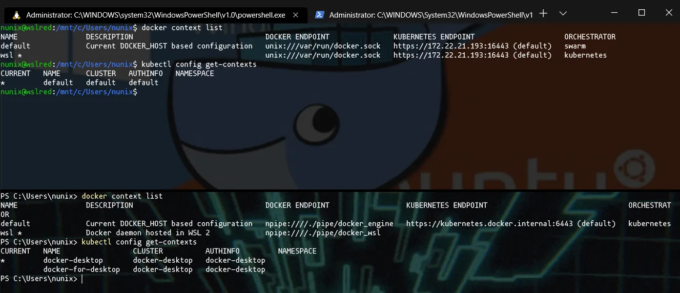 And done, WSL is now configured to connect not only to Docker but also Kubernetes.