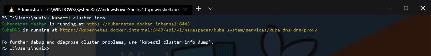 PS> wsl$ export KUBECONFIG=/mnt/c/Users/<your username>/.kube/config$ kubectl cluster-info