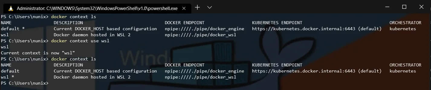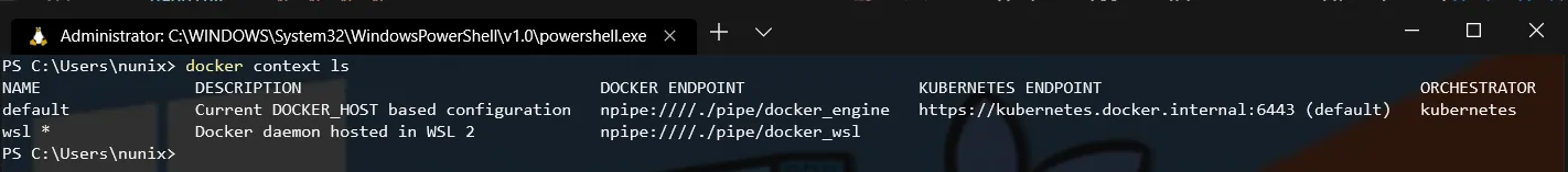 PS> docker context use wsl