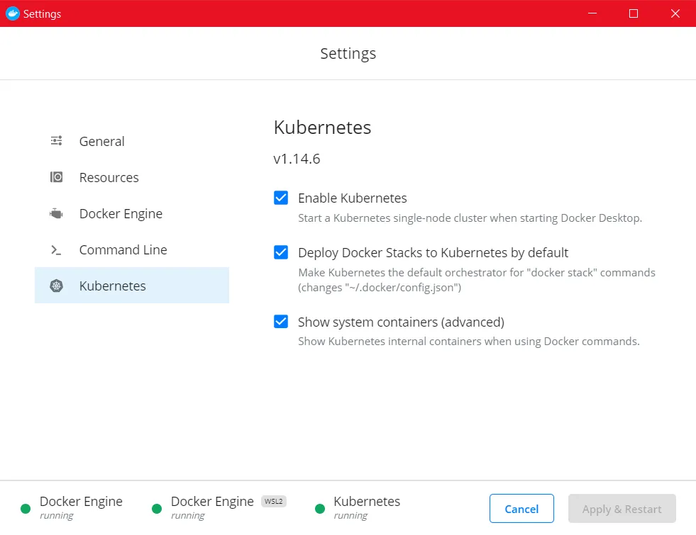 - Enable Kubernetes on the Docker Desktop settings