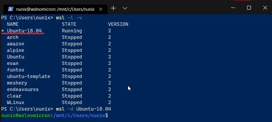 - Launch a new Ubuntu session (needs to be the default WSL distro)