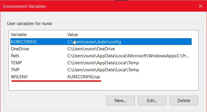 KUBECONFIGvariable to be part ofWSLENV
